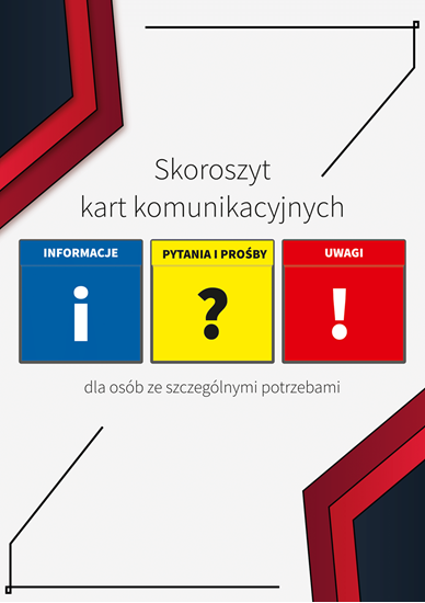 Skoroszyt kart komunikacyjnych dla osób ze szczególnymi potrzebami to zestaw 28 kolorowych kart w formacie A4, z piktogramami i ich krótkimi opisami. Karty umieszczone są w skoroszycie. Cała zawartość podzielona jest na 3 główne kategorie, zawiera ponadto strony z alfabetem i z liczbami. W założeniu karty mają służyć pracownikom Zakładów Podstawowej Opieki Zdrowotnej do prostego komunikowania się z osobami z różnego rodzaju niepełnosprawnościami i dysfunkcjami.