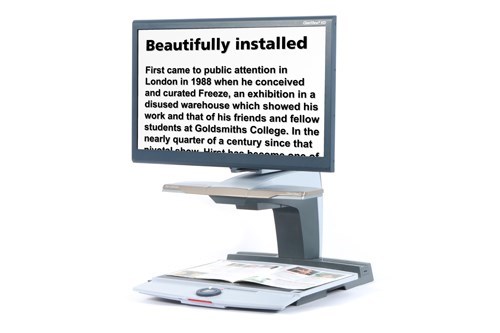 Prostota obsługi ClearView+ umożliwia płynne przesuwanie czytanych dokumentów. Ergonomiczna podstawka na nadgarstki sprawia, że dłonie nie męczą się podczas czytania. Specjalny hamulec reagujący na lekkie dotknięcie zatrzymuje i zamraża pozycję książki, albumu czy czasopisma i zapobiega żmudnym poszukiwaniom miejsca, w którym użytkownik zakończył czytanie. ClearView+ umożliwia wygodne czytanie z bliskiej odległości, zapewniając łatwe dostosowanie monitora do preferowanej przez użytkownika pozycji. Możliwe jest przesuwanie monitora w górę i w dół, można też go przechylać w celu optymalizacji odległości od poziomu wzroku do obrazu. Elastyczne ramię oferuje 90-stopniowy obrót, podążający za czytanym wierszem lub kolumną. Sterowanie urządzeniem jest nadzwyczaj proste, odbywa się praktycznie przy użyciu jednego, dużego, wygodnego przycisku znajdującego się na frontowym panelu wysuwanego stolika. Rzadziej używane przyciski są ukryte w pokrywie, pod zasuwaną klapką, chroniącą je przed przypadkowym naciśnięciem. Znakomitą jakość obrazu, charakterystyczną dla wszystkich urządzeń firmy Optelec uzyskano dzięki wieloletnim doświadczeniom i doskonaleniu technologii przetwarzania obrazu. Gładkie krawędzie obiektów graficznych i czcionek, żywe, ostre kolory w sposób doskonały odwzorowujące prawdziwe barwy – oto znaki rozpoznawcze urządzeń ClearView. ClearView+ jest powiększalnikiem w pełni konfigurowalnym. Można go zakupić z opcjami dostosowanymi do potrzeb użytkownika oraz budżetu jakim dysponuje. Oferujemy naszym klientom modele z opcjami podstawowymi i zaawansowanymi oraz z różnymi rodzajami monitorów. Każdy z modeli ClearView+ wyposażony jest standardowo w funkcję połączenia z komputerem.