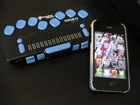 Focus 14 Blue to 14-znakowy, przenośny, mieszczący się w kieszeni monitor brajlowski. Współpracuje ze smartfonami, tabletami, notebookami i komputerami stacjonarnymi. Posiada szybko reagującą, 8-punktową klawiaturę typu Perkins, przyciski przywoływania kursora, wygodne klawisze nawigacyjne góra - dół, przyciski trybu służące do szybkiej nawigacji po plikach, listach i menu, przyciski przewijania, regulację sztywności punktów brajlowskich, port USB i łączność bluetooth. Wbudowana bateria zapewnia blisko 20 godzin pracy.