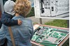 Na pierwszym zdjęciu prezentujemy rozbudowany terminal, zaprojektowany i wykonany przez nas dla warszawskiego zoo. Jest udźwiękowiony i dostępny dotykowo, dzięki zastosowaniu wypukłego planu sytuacyjnego. Osoby niewidome mogą zapoznawać się z układem ścieżek i miejsc przebywania zwierząt. Dobrze widoczne są wejścia i wyjścia z zoo, toalety, punkty gastronomiczne, plac zabaw dla dzieci, zabudowania itp.